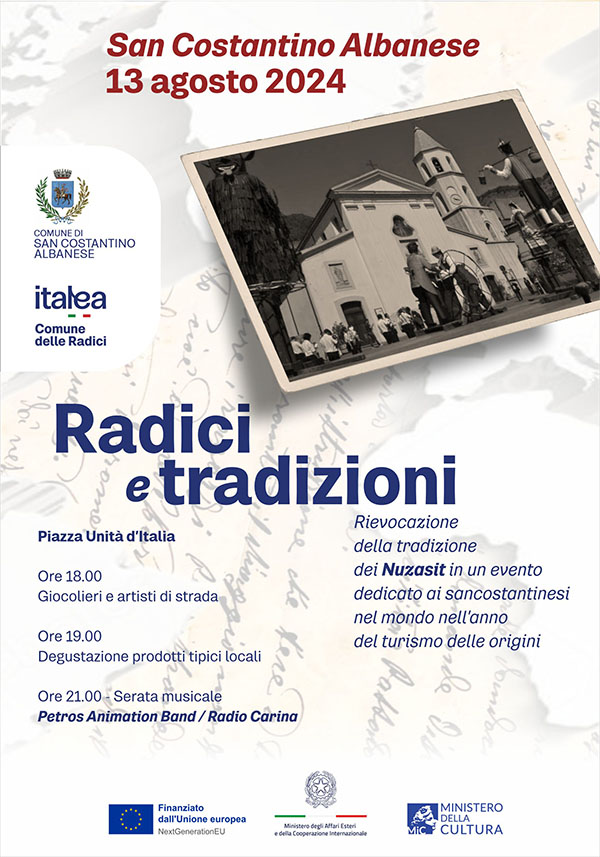 Tra radici e tradizioni, San Costantino Albanese dedica il 13 Agosto una intera giornata ai suoi paesani nel mondo, in un evento inserito nell’anno del Turismo delle origini e nell’estate sancostantinese.