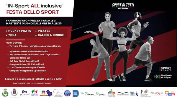 Il 6 giugno si svolgerà a Sant’Arcangelo, presso Piazza Carlo Levi, la “La Festa dello Sport”, secondo evento inserito nel programma del progetto “IN-Sport ALL Inclusive” rientrante nel progetto Nazionale “Sport di Tutti – Inclusione” promosso da Sport e Salute.