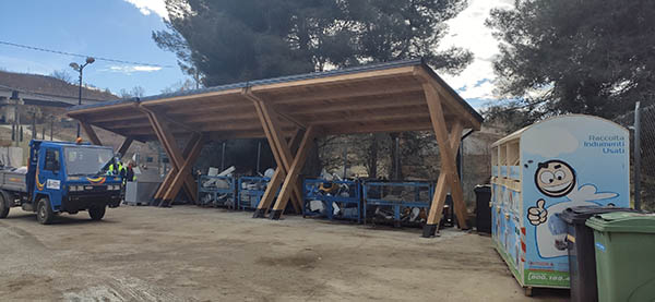 Sono state posizionate tre tettoie, per proteggere dalle intemperie i rifiuti RAEE, ed è stata ampliata l’area tra i due ingressi, dove verrà poi collocato un compattatore mangia plastica.