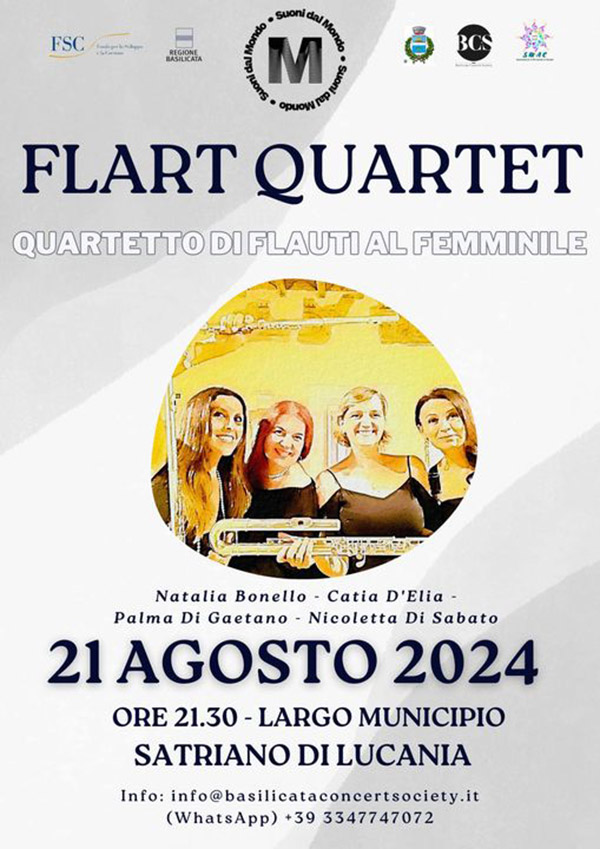 A Satriano di Lucania stasera alle 21.30 avanti al Municipio ci sarà il concerto del FLART Quartet.