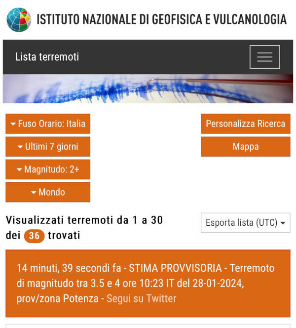 STIMA PROVVISORIA – Terremoto di magnitudo tra 3.5 e 4 ore 10:23 del 28-01-2024, prov/zona Potenza.
