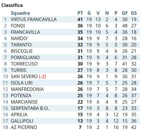 Il Potenza resta quindi di nuovo fermo a 25 punti ed ora è in 13esima posizione in classifica.