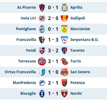 Ecco di seguito tutti i risultati della 19esima giornata della serie D girone H e la classifica aggiornata.