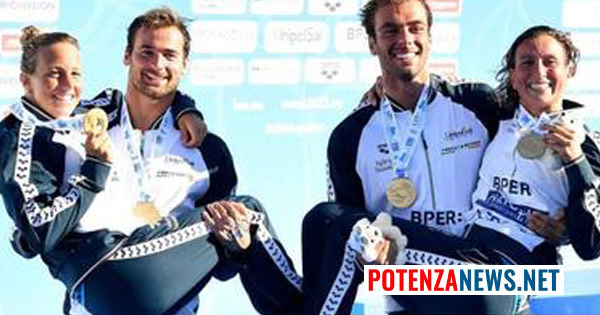 La squadra italiana è composta da Rachele Bruni, Ginevra Taddeucci, Gregorio Paltrinieri e Acerenza che allunga per ultimo.