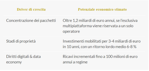 L’intero sistema sarà ridisegnato, pare, con sguardo rivolto soprattutto ai diritti audiovisivi sportivi.