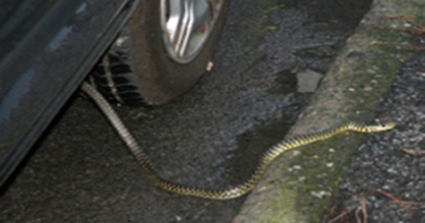 Parcheggiata l’auto davanti ad un negozio, l’uomo appena si è accorto dell’ “intruso” ha subito chiamato i Vigili del Fuoco che hanno prontamente bloccato il serpente.