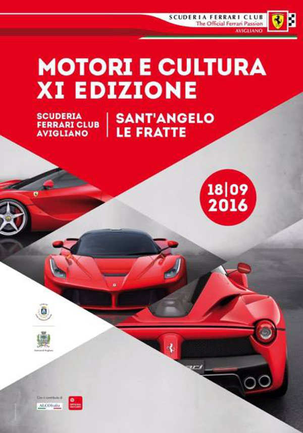 Domenica 18 Settembre a Sant’Angelo Le Fratte (Potenza) si terrà la XI edizione “Motori e Cultura” & Ritrovo Ferrari per una piacevole passeggiata in terra lucana.