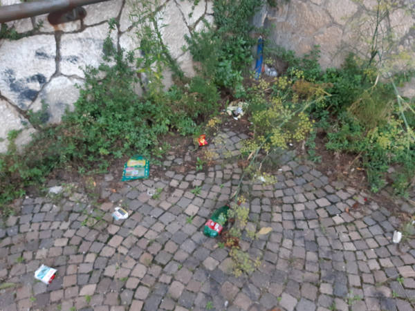 In particolare le strade e gli spazi che circondano il centro e Montereale sono disseminati di rifiuti, che continuano ad accumularsi ovunque lungo: marciapiedi scalinate, scarpate, cunette stradali, parcheggi.