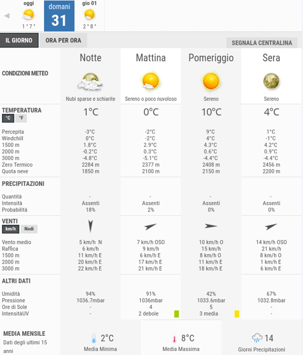 La temperatura massima registrata pare che sarà di 8°C, la minima di 2°C.