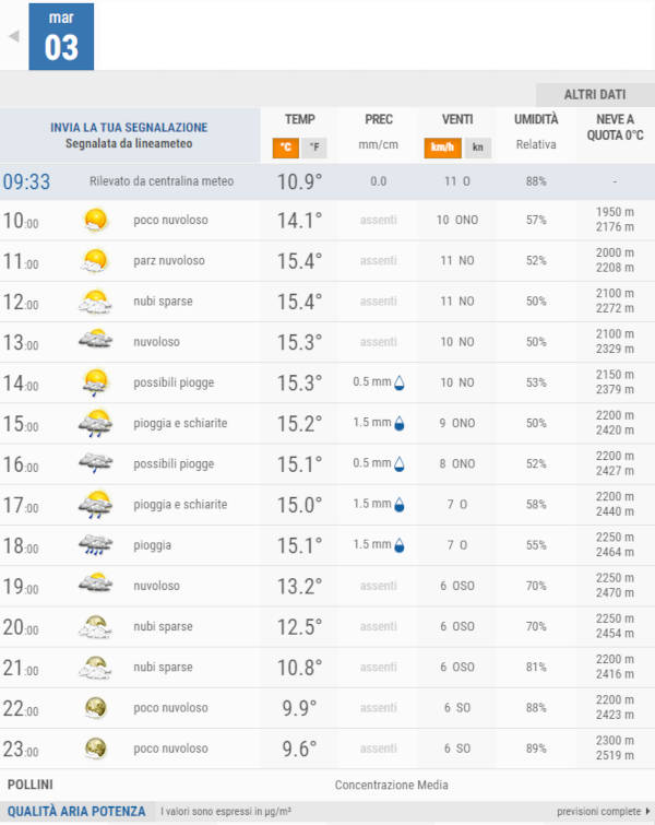 Che tempo ci attende nelle prossime ore su Potenza?