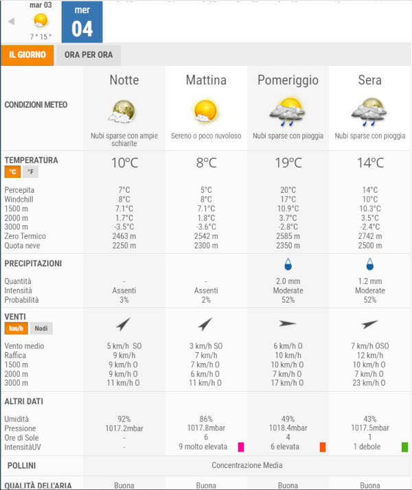 La temperatura massima registrata pare che sarà di 15°C, la minima di 7°C.