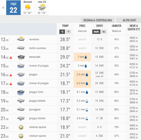 Secondo gli esperti di 3bmeteo, oggi, Lunedì 22 Luglio, avremo nubi in progressivo aumento con piogge e rovesci anche a carattere temporalesco nel pomeriggio.