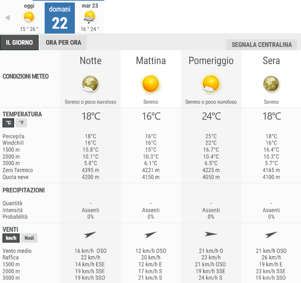 La temperatura massima registrata pare che sarà di 24°C, la minima di 16°C.