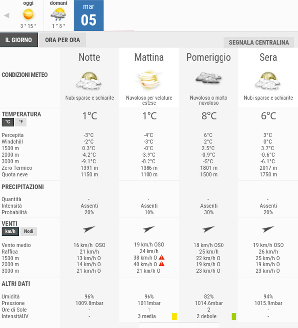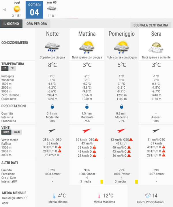 La temperatura massima registrata pare che sarà di 8°C, la minima di 3°C.