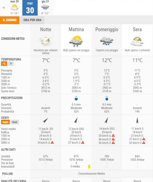 La temperatura massima registrata pare che sarà di 12°C, la minima di 7°C.