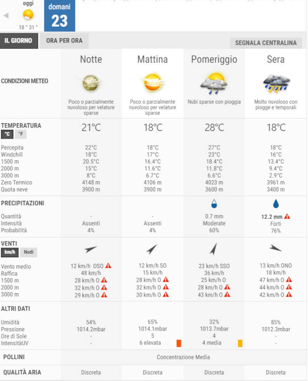 Secondo gli esperti di 3bmeteo, domani, Sabato 23 Settembre, avremo cieli in prevalenza parzialmente nuvolosi, con nubi in progressivo aumento dal pomeriggio associate a deboli piogge, in intensificazione serale.