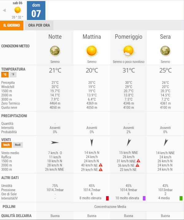 Secondo gli esperti di 3bmeteo, domani, Domenica 7 Agosto, avremo cieli in prevalenza sereni o poco nuvolosi per l’intera giornata, non sono previste piogge.