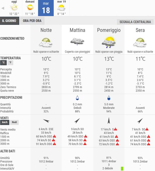 Invece, Martedì 18 Novembre avremo cieli in prevalenza poco nuvolosi per l’intera giornata, non sono previste piogge.