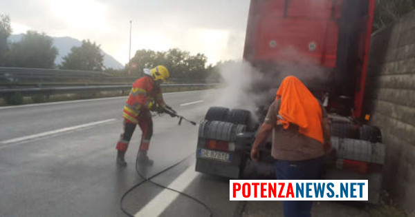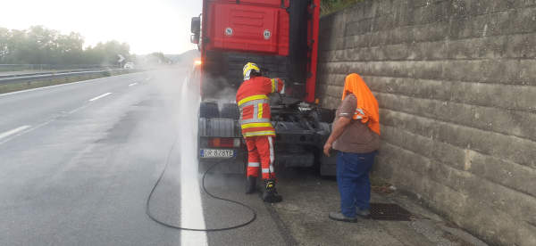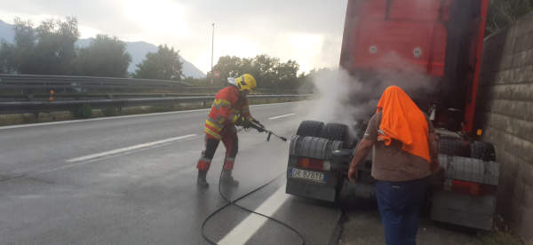 Al Km 14.100 metri un articolato carico di cemento prendeva fuoco nella parte posteriore della cabina”.