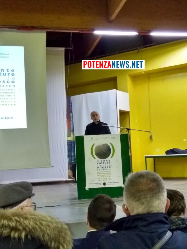 Il primo intervento programmato è stato quello del presidente del club UNESCO del Vulture (club che collabora con l’ente parco), Franco Perillo, il quale ha approfondito i vari aspetti del progetto, elencando gli importanti impatti che lo stesso avrebbe su tutto il territorio in termini di prestigio e sviluppo socio-economico.