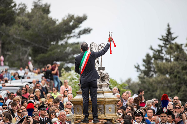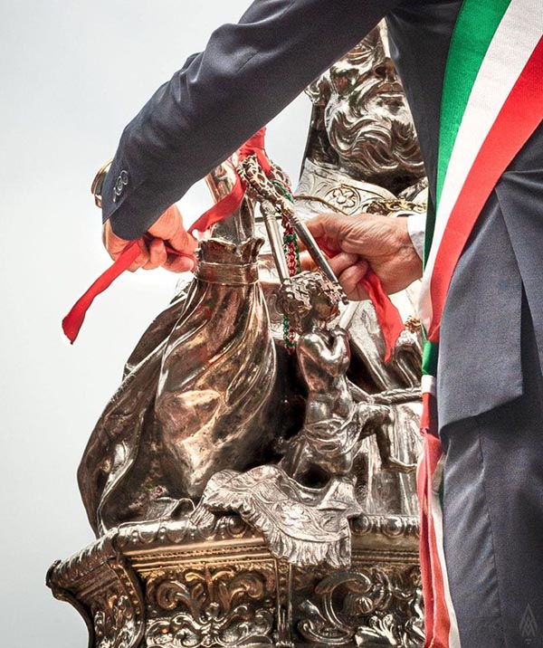Arrivati a Capocasale il mantello viene slegato e il Santo riceve dal sindaco le chiavi della città.