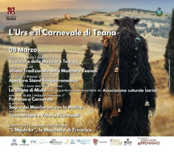 Per la prima volta nella storia del Carnevale di Teana, fa il suo debutto Miska, una maschera interamente femminile che segna un’innovazione nella tradizione.