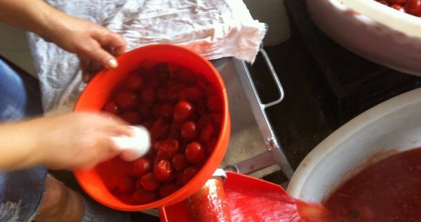 Una volta ricevuta tutta la quantità di prodotto richiesta (i pomodori devono aver raggiunto una fase avanzata di maturazione) si passa al lavaggio: i pomodori vengono messi in grosse bacinelle piene d’acqua per essere lavati accuratamente e per eliminare eventuali parti danneggiate.