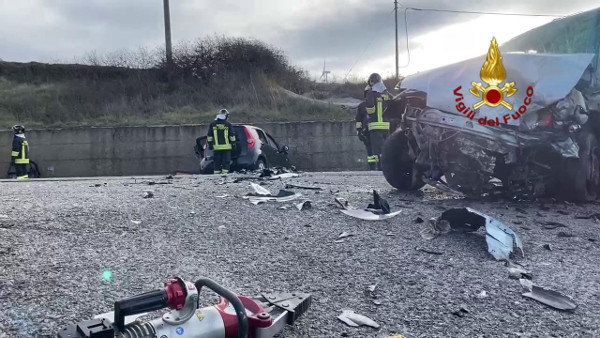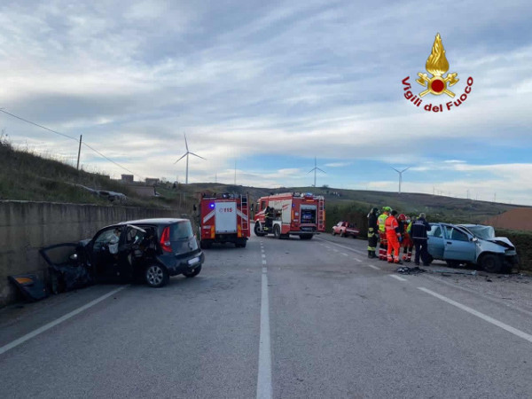 Due autovetture coinvolte in uno scontro frontale, una Fiat Punto ed una Opel Agila alimentata a GPL, due uomini all’interno della Punto di cui uno deceduto e l’altro ferito, nell’altra autovettura una donna ed un uomo entrambi feriti.