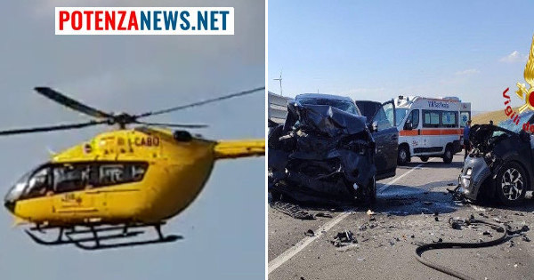 Sul posto sono intervenuti anche Carabinieri e personale sanitario con l’elisoccorso che hanno trasportato i feriti all’Ospedale di Potenza.