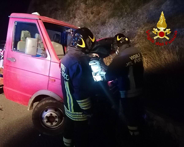 I Vigili del Fuoco, giunti sul posto, hanno trovato due veicoli coinvolti in uno scontro frontale, una Nissan X Trail ed un furgone tipo Daily.