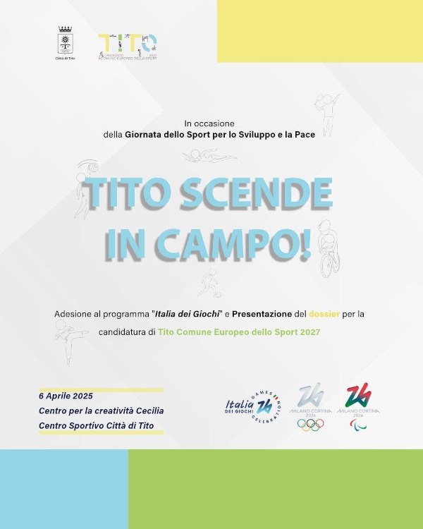 L’iniziativa si inserisce nel quadro del progetto nazionale “Italia dei Giochi”, promosso dalla Fondazione Milano Cortina 2026, a cui il Comune di Tito ha aderito per diffondere i valori olimpici e paralimpici dello sport.