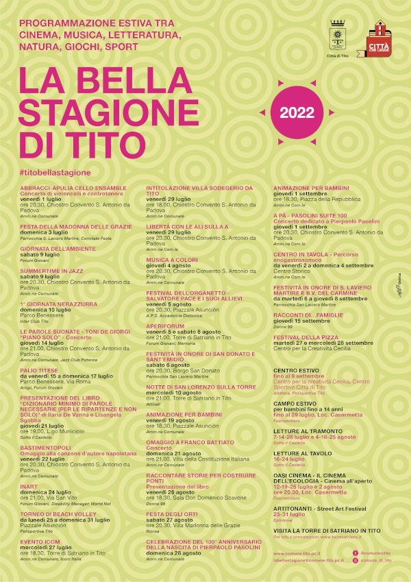 Ritorna alla normalità “La Bella stagione di Tito”, il programma degli eventi estivi, promosso dall’Amministrazione Comunale e dalle associazioni locali.