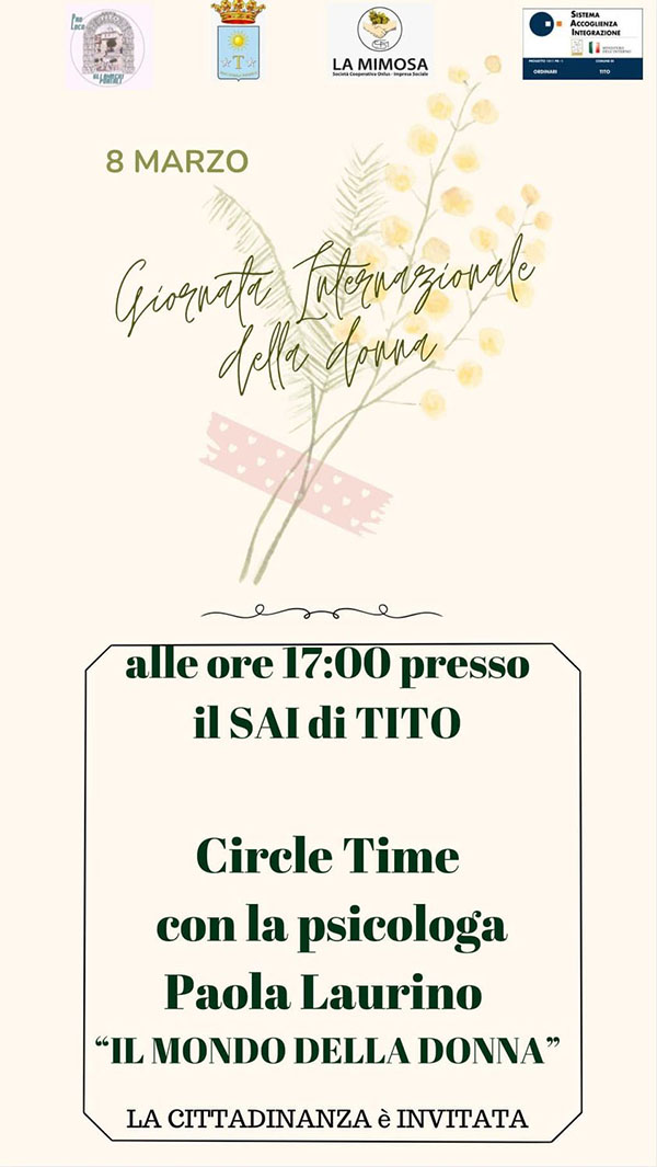 L’8 Marzo – per la giornata della donna – la psicologa Paola Laurino terrà un’attività laboratoriale circletime sul mondo della donna!