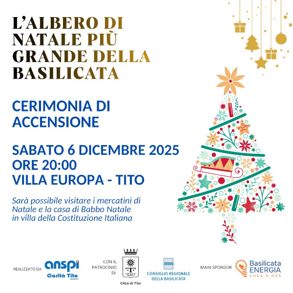 L’accensione sarà trasmessa in diretta sui canali social ufficiali del Comune di Tito e sulla pagina Facebook.