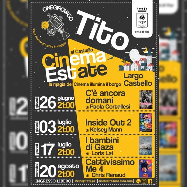 Tito, torna il cinema gratuito all’aperto: ecco i film in programma