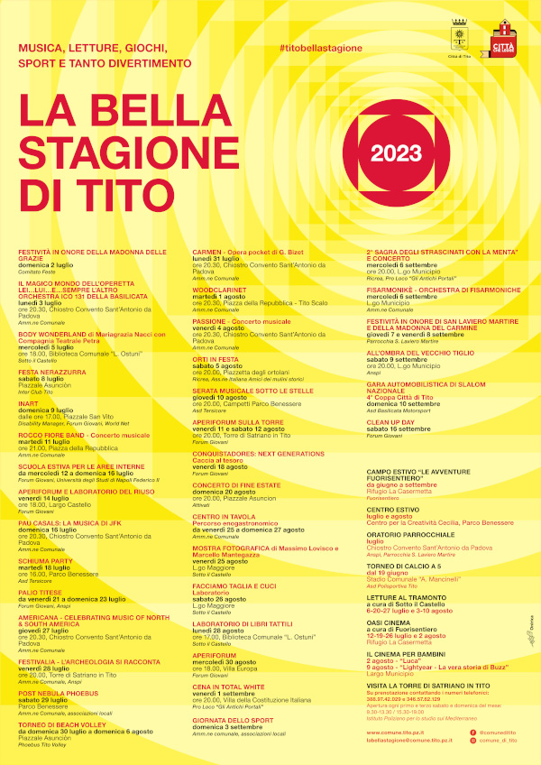 È tutto pronto a Tito per dare il via all’edizione 2023 de “La Bella Stagione di Tito”, una serie di appuntamenti di vario genere per tutta l’estate titese.