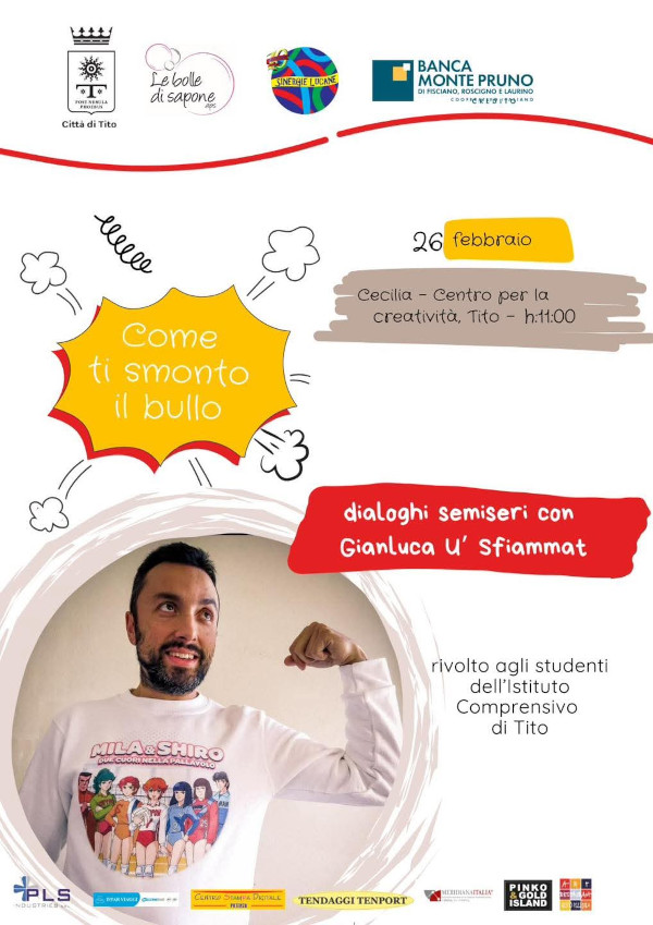 Mercoledì 26 Febbraio alle ore 11:00, presso il centro per la Creatività Cecilia, l’associazione Bolle di Sapone, in collaborazione con Sinergie Lucane, presenta uno spettacolo rivolto agli studenti dell’istituto comprensivo di Tito, che ha l’obiettivo di sensibilizzare le fasce di età più giovani sul fenomeno sociale del bullismo, sempre più in crescita soprattutto negli ambienti scolastici.