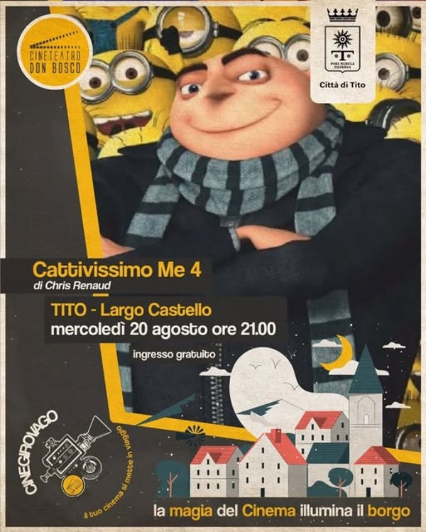 Il Comune di Tito annuncia che “sullo schermo andrà in onda il film “Cattivissimo me 4”.