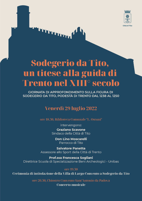 Decisione presa, appunto, per recuperare e valorizzare la figura di Sodegerio, funzionario di origine titese, che agì politicamente nel Principato vescovile di Trento tra il dicembre del 1238 e il maggio del 1255 su mandato degli imperatori Federico II di Svevia e Corrado IV Hohenstaufen.
