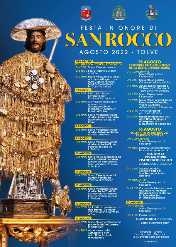 Tolve si prepara a festeggiare San Rocco, il suo Santo Patrono.