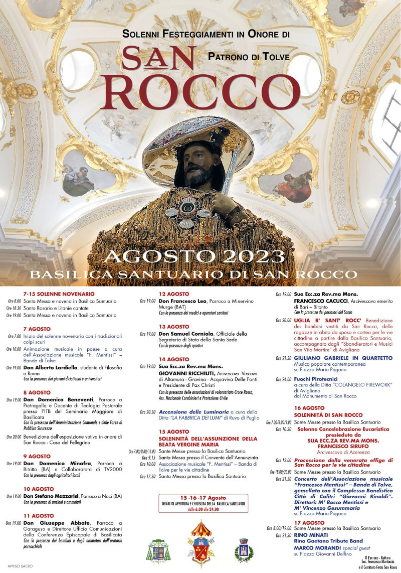 Tolve si prepara a festeggiare San Rocco, il suo Santo Patrono.