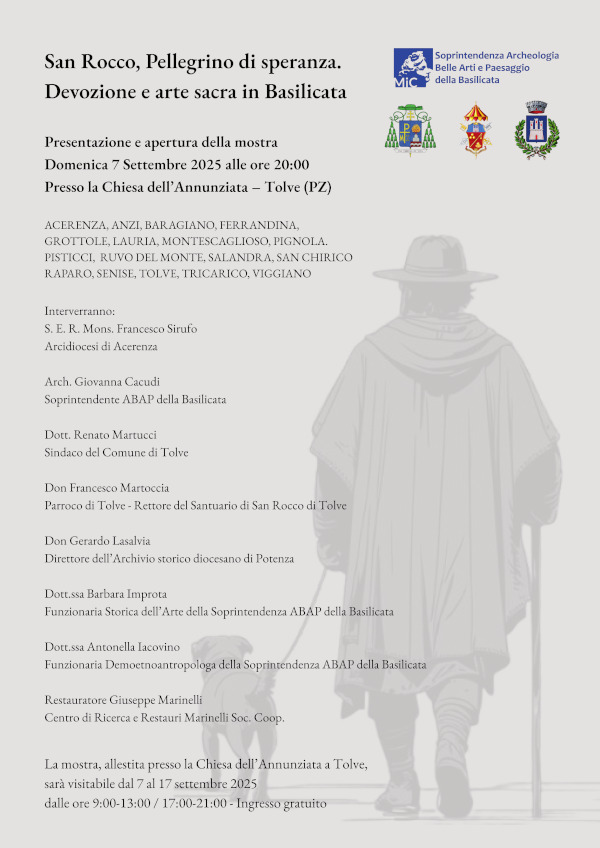 La Soprintendenza Archeologia Belle Arti e Paesaggio della Basilicata è lieta di annunciare l’apertura della mostra “San Rocco, Pellegrino di Speranza. Devozione e arte sacra in Basilicata”.