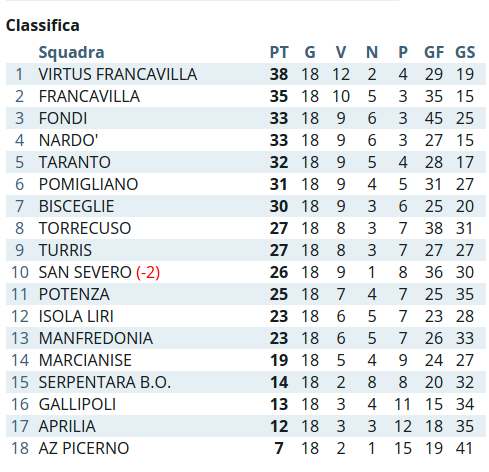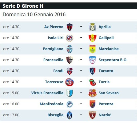 Ecco di seguito tutte le partite della 19esima giornata della serie D girone H e la classifica.