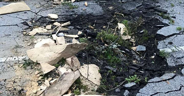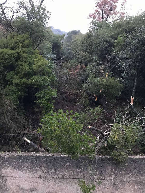 Il masso dopo essersi staccato dal costone a causa delle incessanti piogge di questo periodo, termina la carambola, nella stradina in cemento sottostante, di proprietà di Ferrovie dello Stato, non prima di aver danneggiato la sede stradale provinciale.
