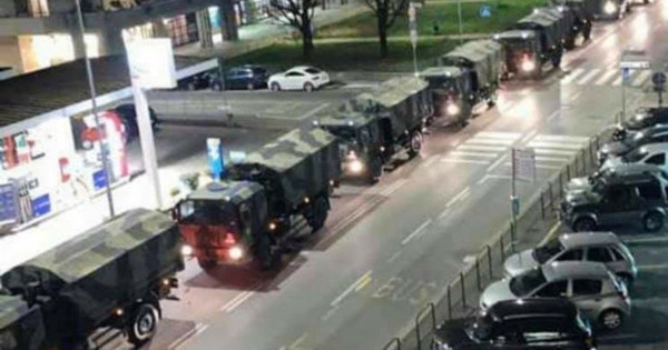 Una lunga colonna di mezzi militari si è riversata nella notte per le vie di Bergamo.