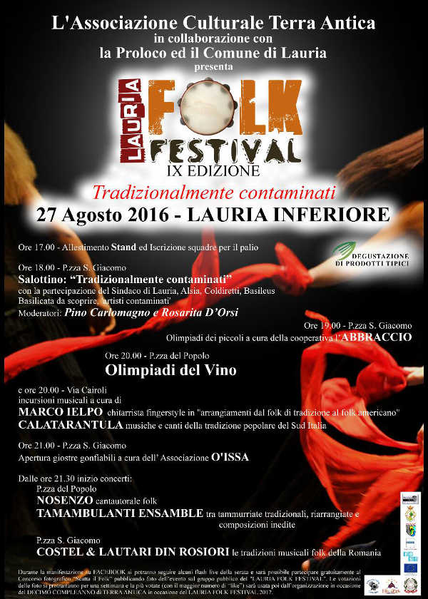 Tutto pronto per la nona edizione del Lauria Folk Festival che si svolgerà Sabato 27 Agosto, nel Rione Inferiore di Lauria (Potenza).