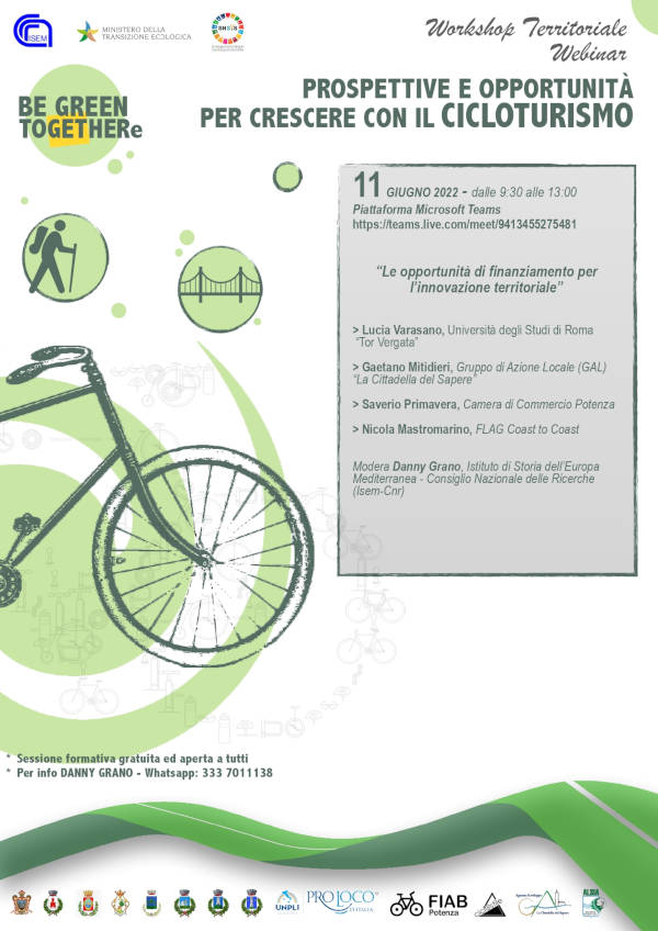 Si terrà online, sabato 11 giugno, l’evento formativo “Le opportunità di finanziamento per l’innovazione territoriale” organizzato dall’Istituto di Storia dell’Europa Mediterranea – Consiglio Nazionale delle Ricerche (Isem-Cnr), nell’ambito del progetto “Paesaggi ferroviari lucani per la sostenibilità del territorio e lo sviluppo locale.