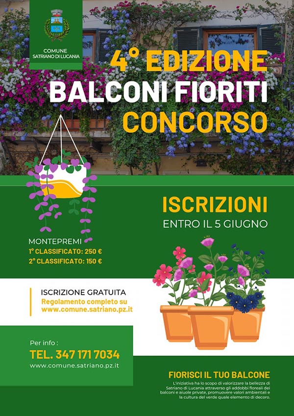 L’Amministrazione Comunale di Satriano di Lucania indice la quarta edizione del concorso “Balconi e Aiuole Fiorite”.