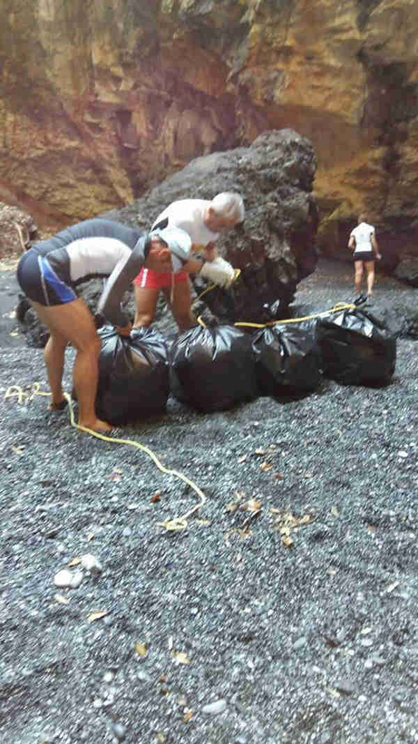 Donne e uomini al lavoro lungo la Costa, a rimuovere la spazzatura accumulata nelle scarpate e sulle spiagge, portata dal mare o buttata da esseri indegni del genere umano.
