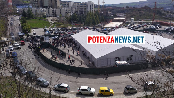 Vaccini, caos a Potenza: assembramento alle tende del Qatar e traffico rallentato! Le foto